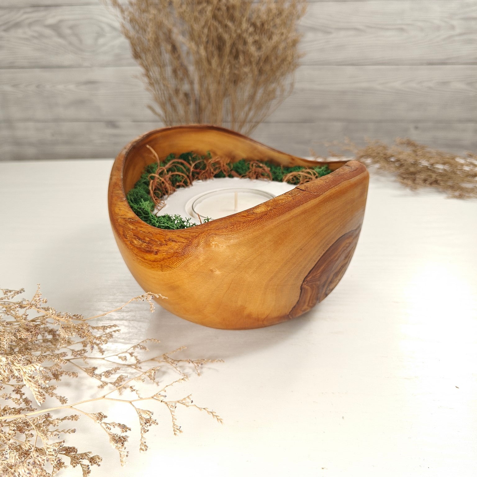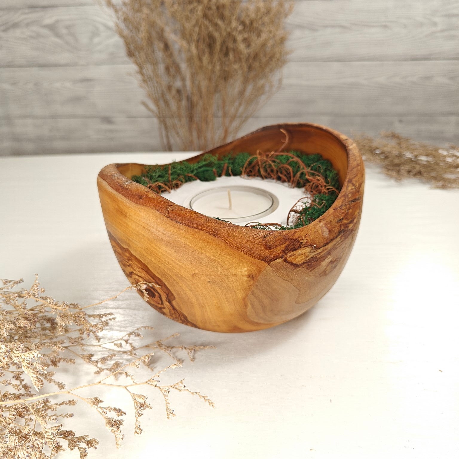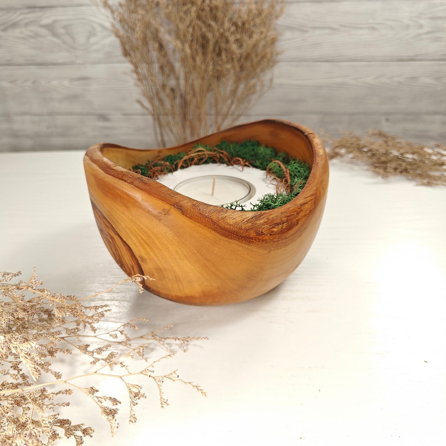 Unsere Olivenholzschalen für Teelichter sind die perfekte Geschenkidee.  Das charaktervolle Olivenholz, verbunden mit weissem Guss-Keramik ergibt einen schönen Farbkontrast und lässt die Kerze durch die weisse Fläche noch heller erscheinen. Jede Kerze ist ein Unikat und einzigartiges Geschenk.