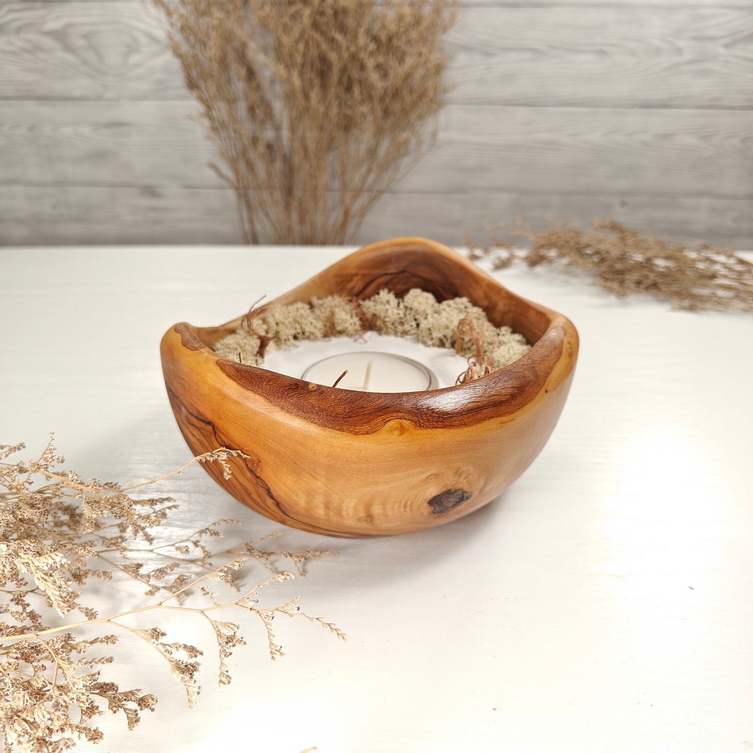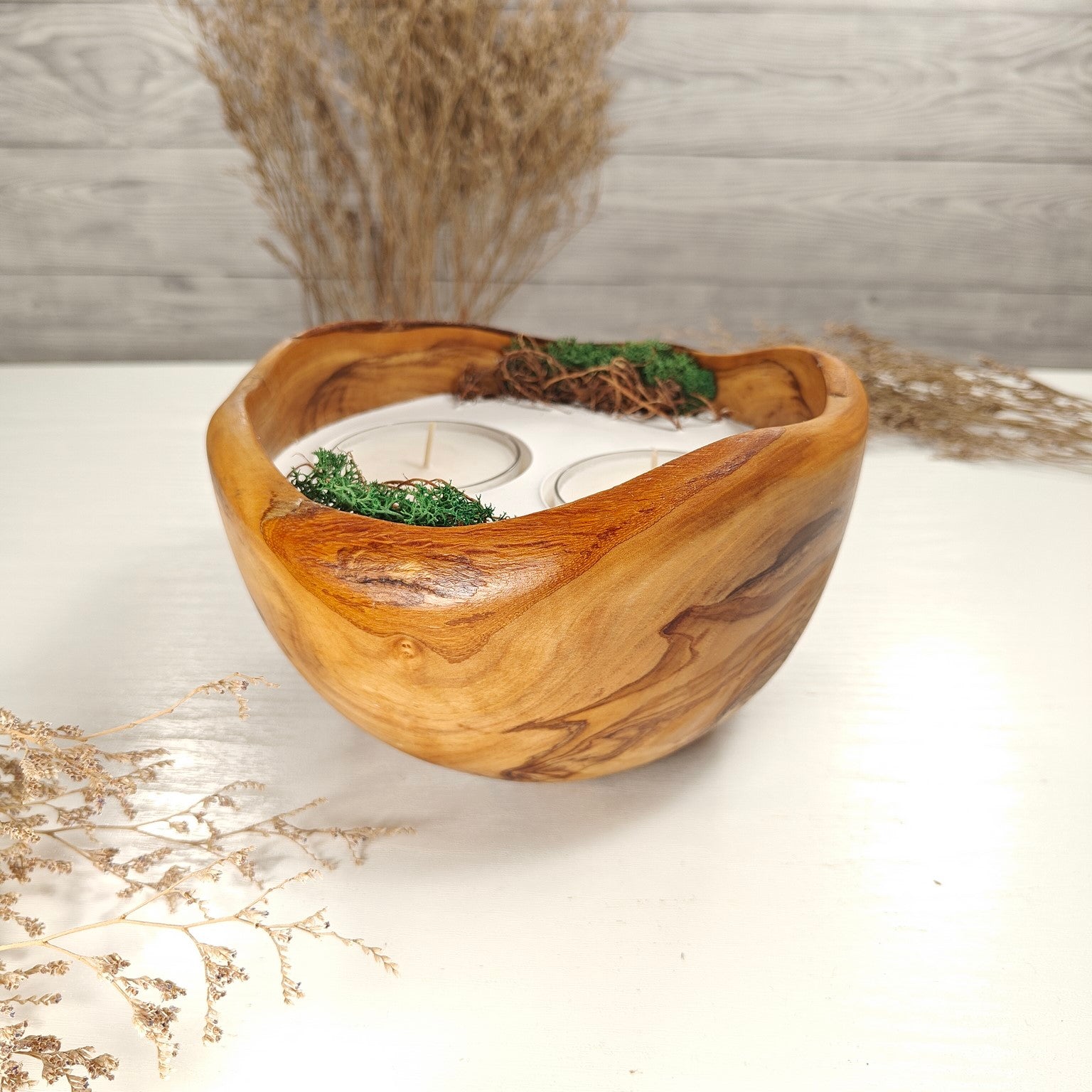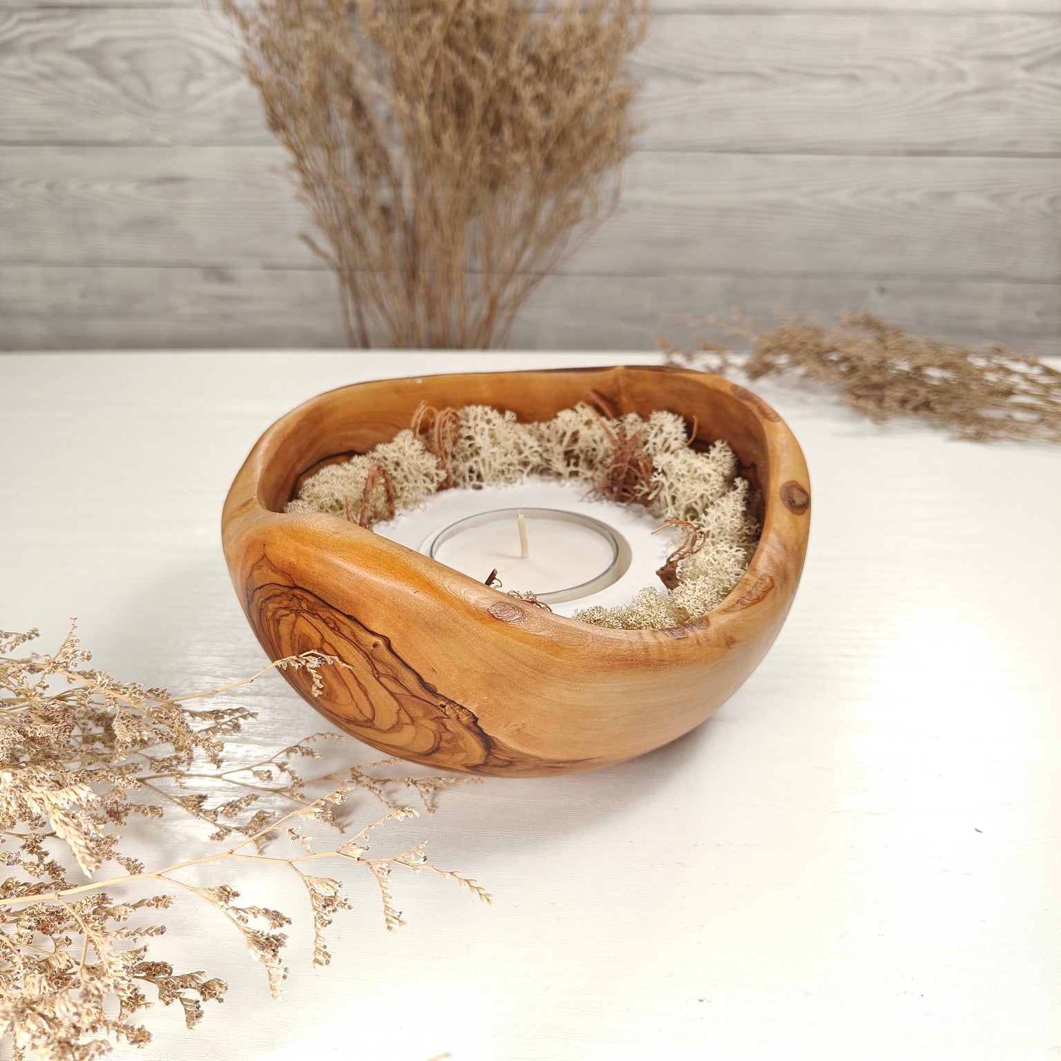 Unsere Olivenholzschalen für Teelichter sind die perfekte Geschenkidee.  Das charaktervolle Olivenholz, verbunden mit weissem Guss-Keramik ergibt einen schönen Farbkontrast und lässt die Kerze durch die weisse Fläche noch heller erscheinen. Jede Kerze ist ein Unikat und einzigartiges Geschenk.