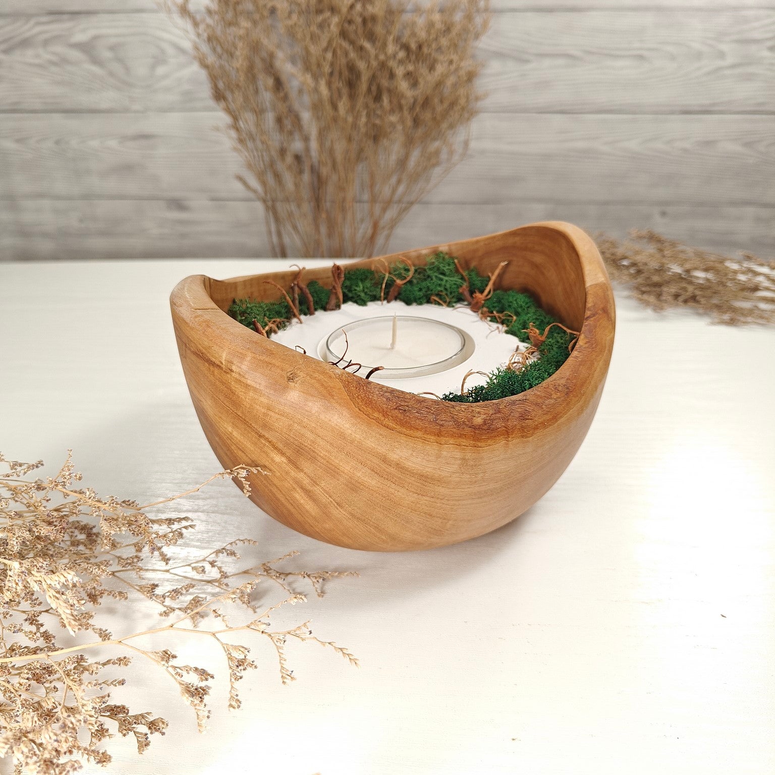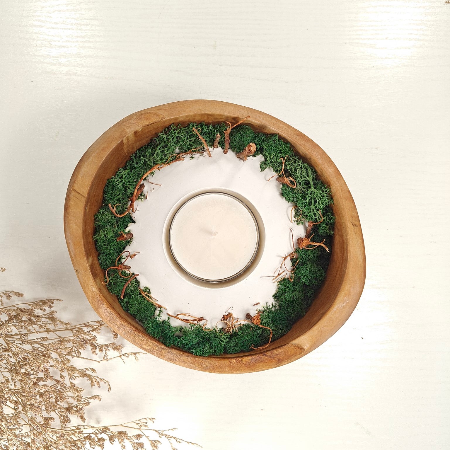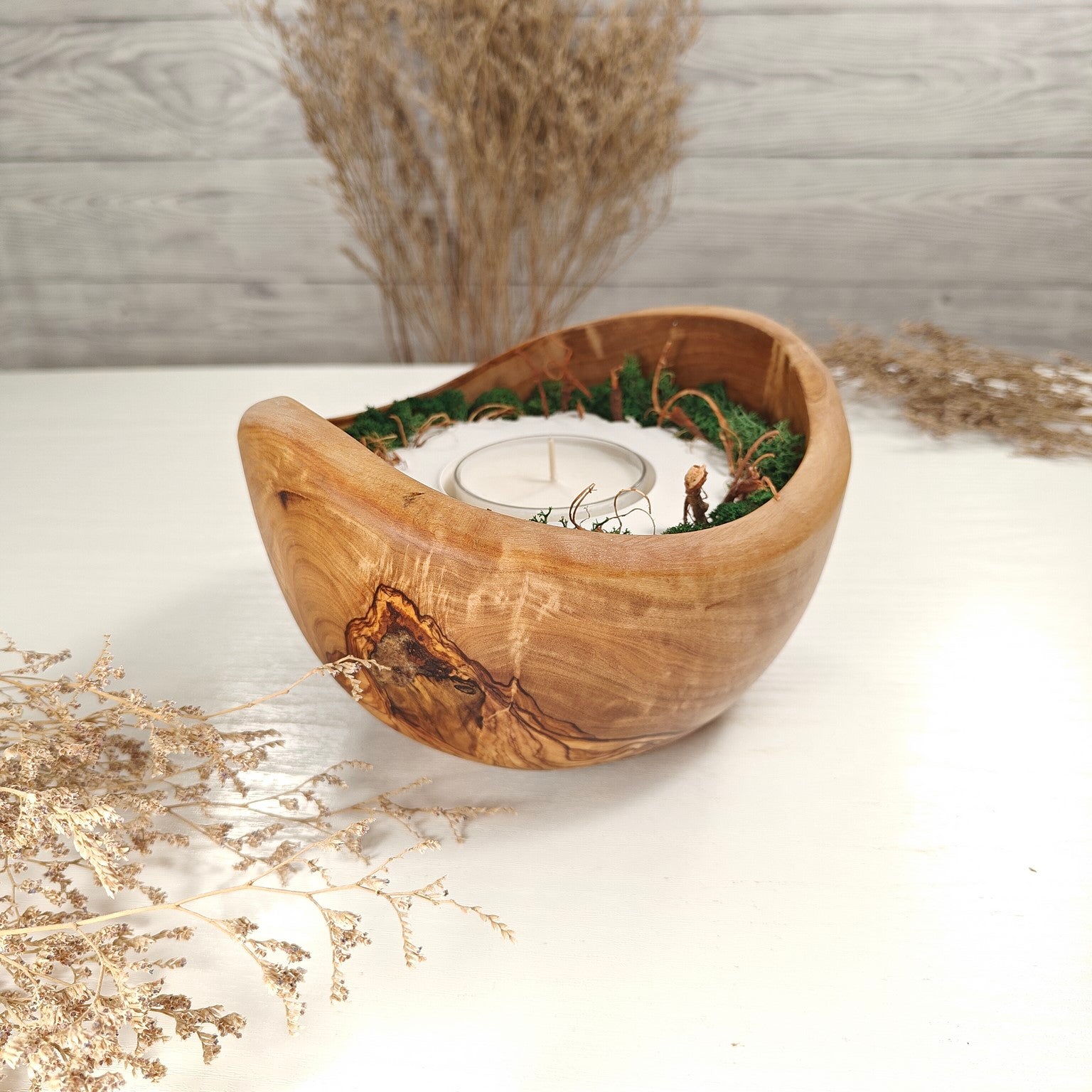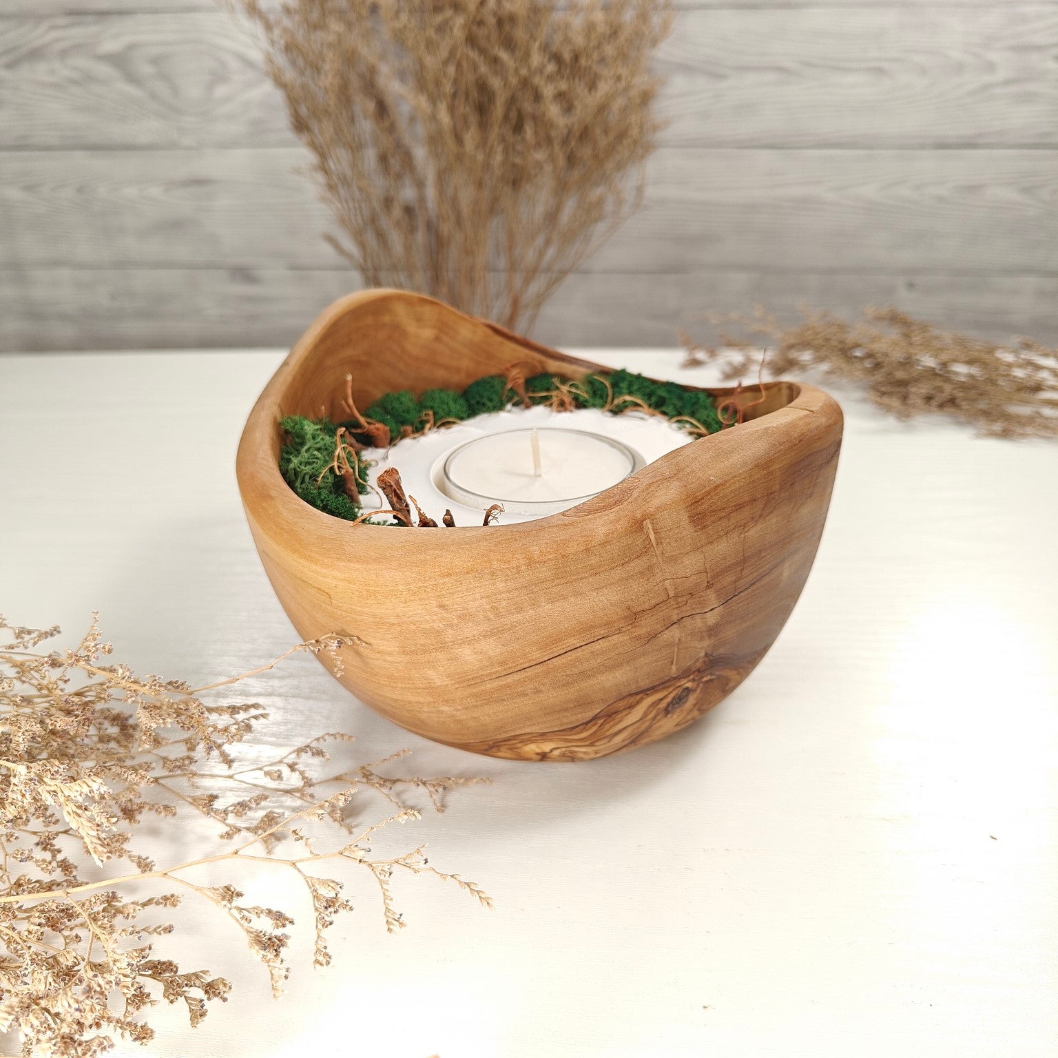 Unsere Olivenholzschalen für Teelichter sind die perfekte Geschenkidee.  Das charaktervolle Olivenholz, verbunden mit weissem Guss-Keramik ergibt einen schönen Farbkontrast und lässt die Kerze durch die weisse Fläche noch heller erscheinen. Jede Kerze ist ein Unikat und einzigartiges Geschenk.