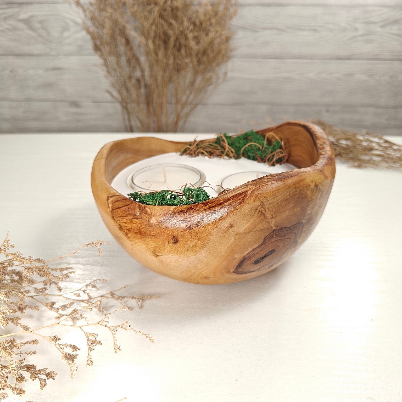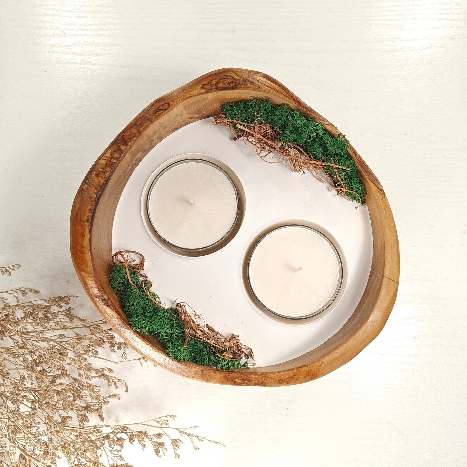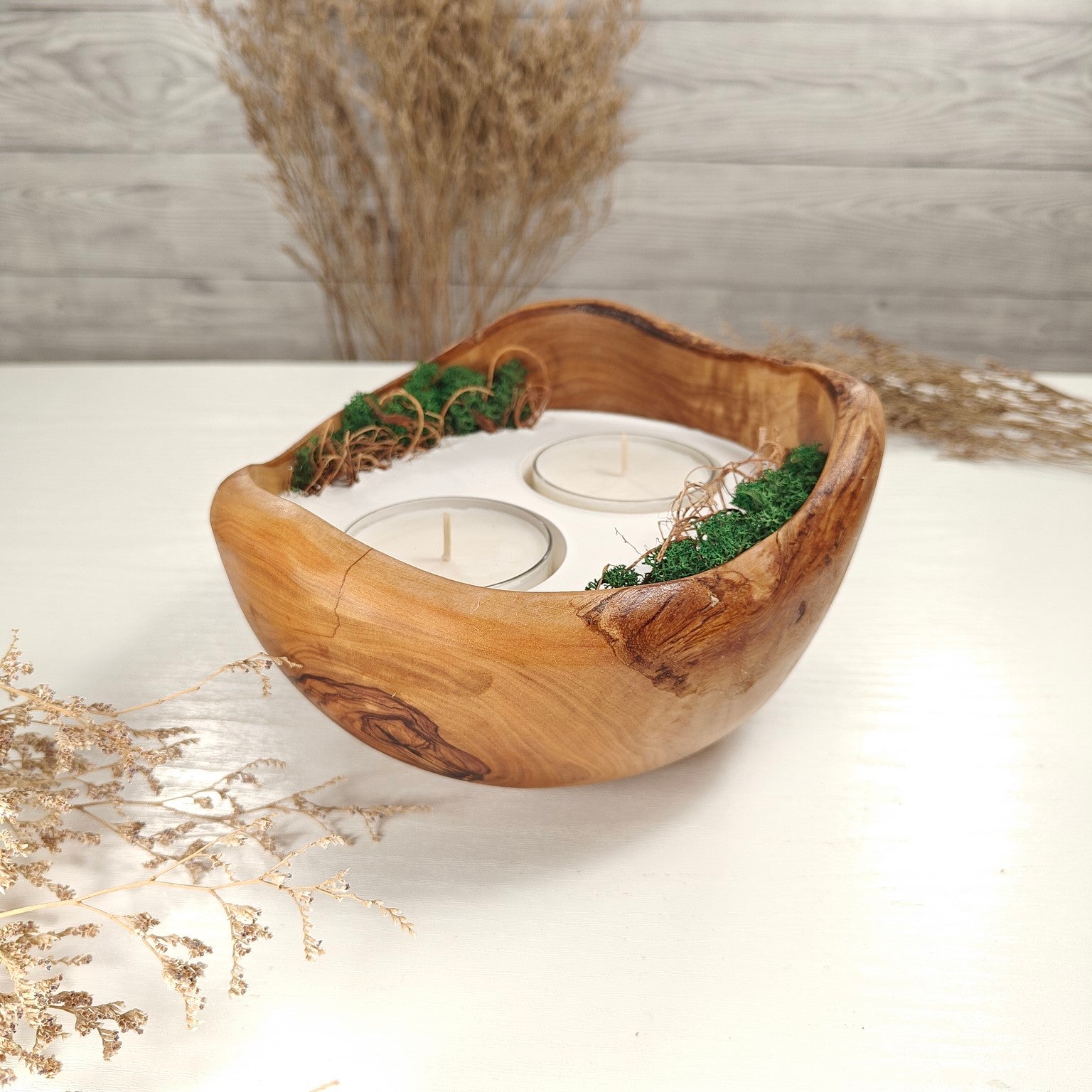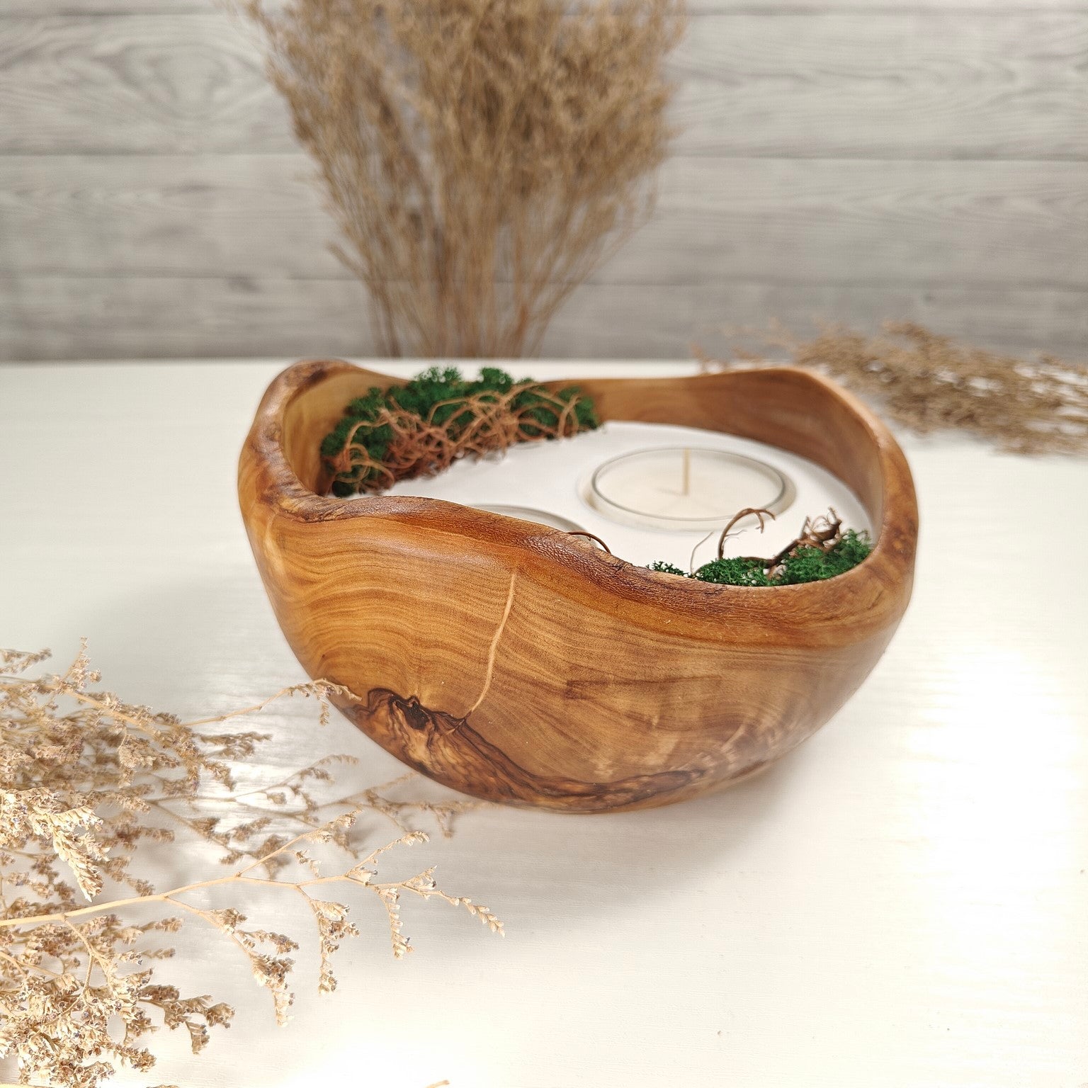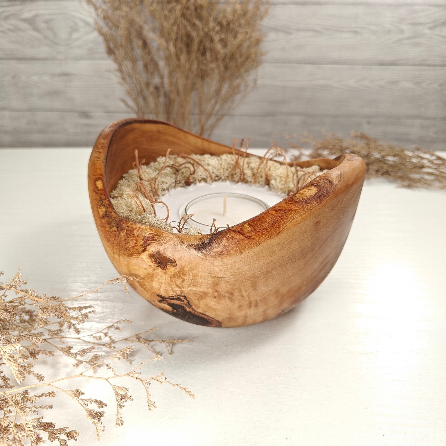 Unsere Olivenholzschalen für Teelichter sind die perfekte Geschenkidee.  Das charaktervolle Olivenholz, verbunden mit weissem Guss-Keramik ergibt einen schönen Farbkontrast und lässt die Kerze durch die weisse Fläche noch heller erscheinen. Jede Kerze ist ein Unikat und einzigartiges Geschenk.