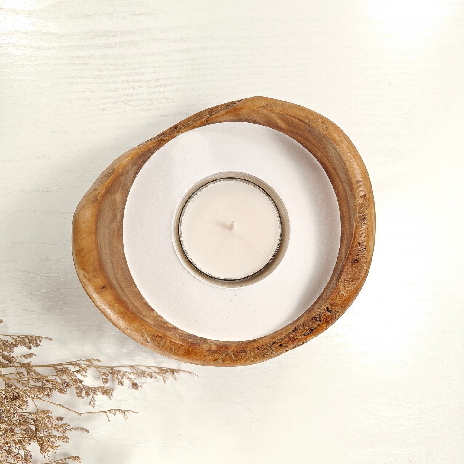Unsere Olivenholzschalen für Teelichter sind die perfekte Geschenkidee.  Das charaktervolle Olivenholz, verbunden mit weissem Guss-Keramik ergibt einen schönen Farbkontrast und lässt die Kerze durch die weisse Fläche noch heller erscheinen. Jede Kerze ist ein Unikat und einzigartiges Geschenk.