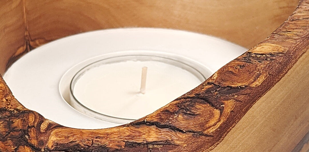 Unsere Olivenholzschalen für Teelichter sind zu Beginn mit einem Teelicht ausgestattet. Hierfür nutzen wir reine Rapswachs-Teelichter.