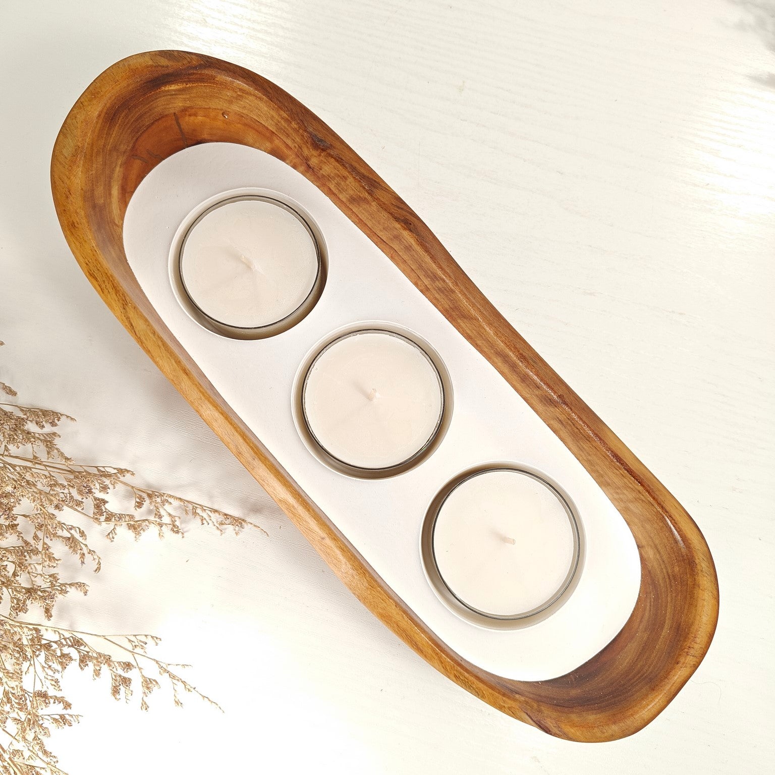 Unsere Teelichter in Olivenholzschalen sind die perfekte Geschenkidee.  Das charaktervolle Olivenholz, verbunden mit weissem Guss-Keramik ergibt einen schönen Farbkontrast und lässt die Kerze durch die weisse Fläche noch heller erscheinen. Jede Kerze ist ein Unikat und einzigartiges Geschenk.
