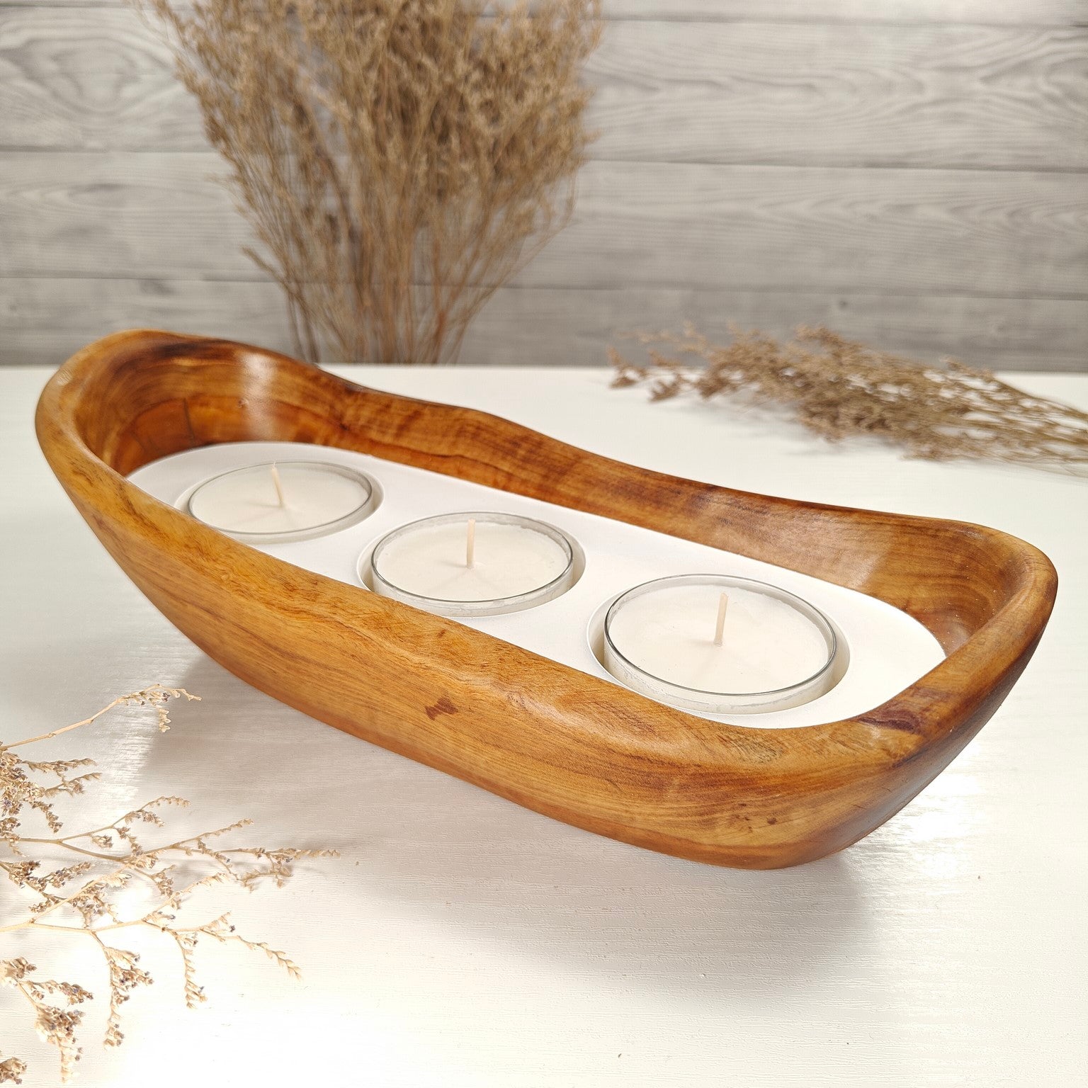 Unsere Teelichter in Olivenholzschalen sind die perfekte Geschenkidee.  Das charaktervolle Olivenholz, verbunden mit weissem Guss-Keramik ergibt einen schönen Farbkontrast und lässt die Kerze durch die weisse Fläche noch heller erscheinen. Jede Kerze ist ein Unikat und einzigartiges Geschenk.