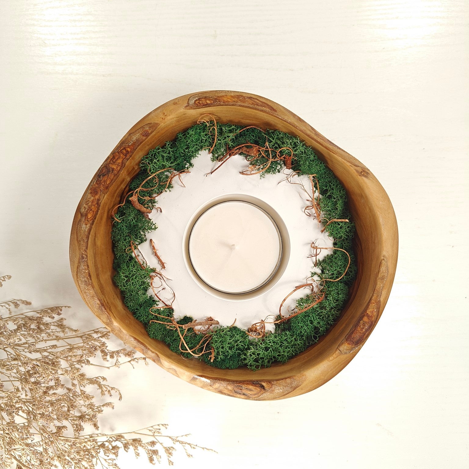 Teelicht-Kerze in Olivenholzschale, TRC-XL-00031, D 17cm, 60mm Teelicht
