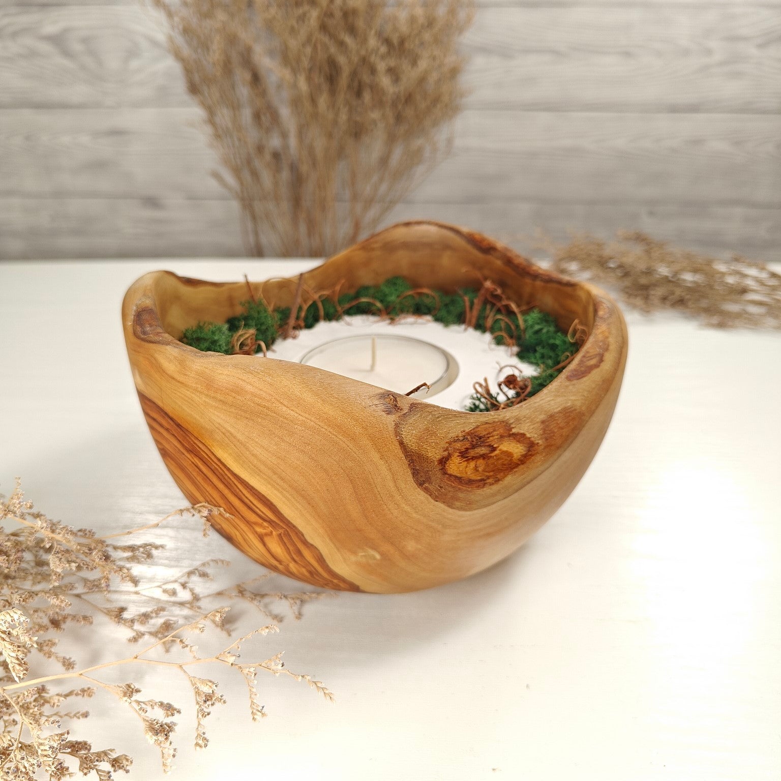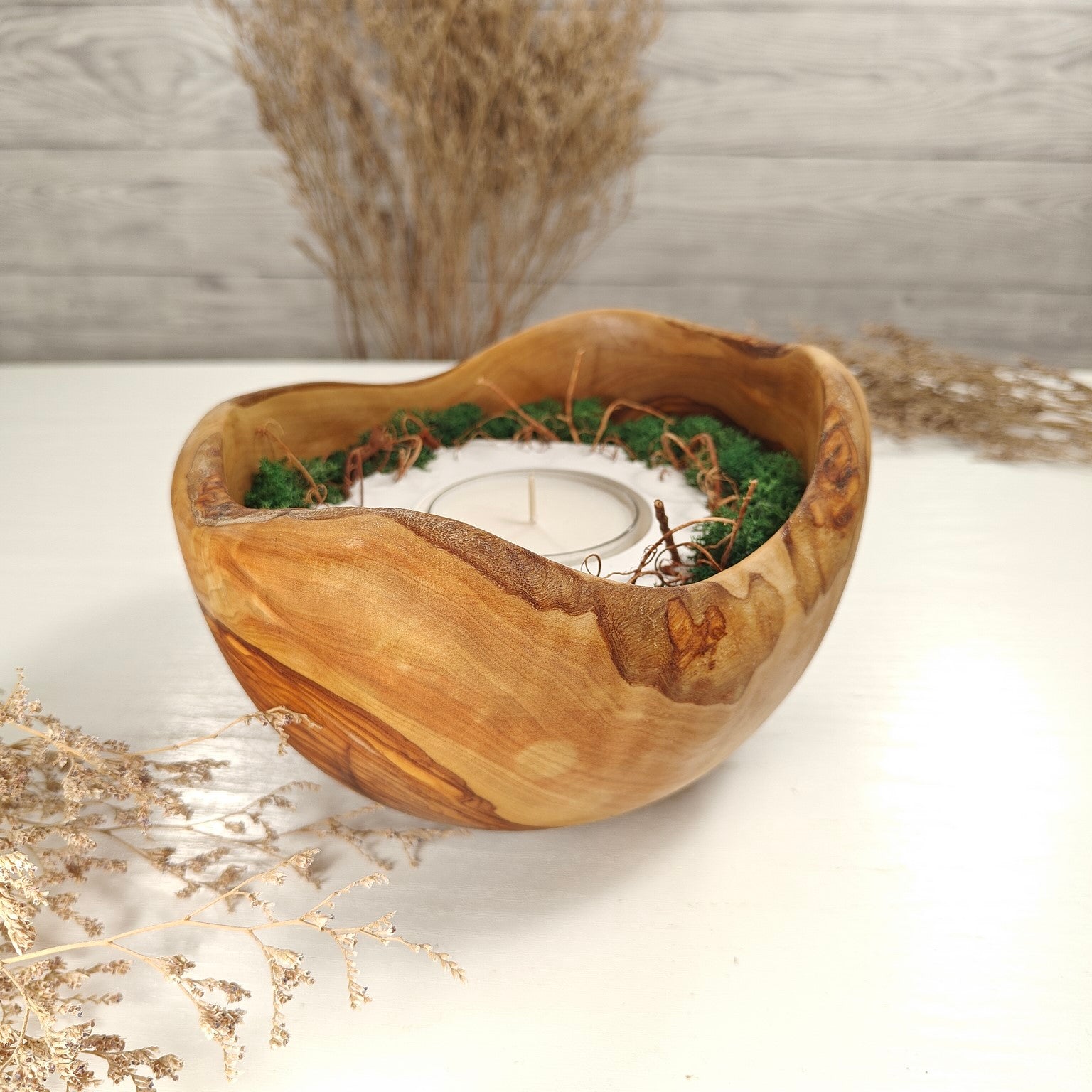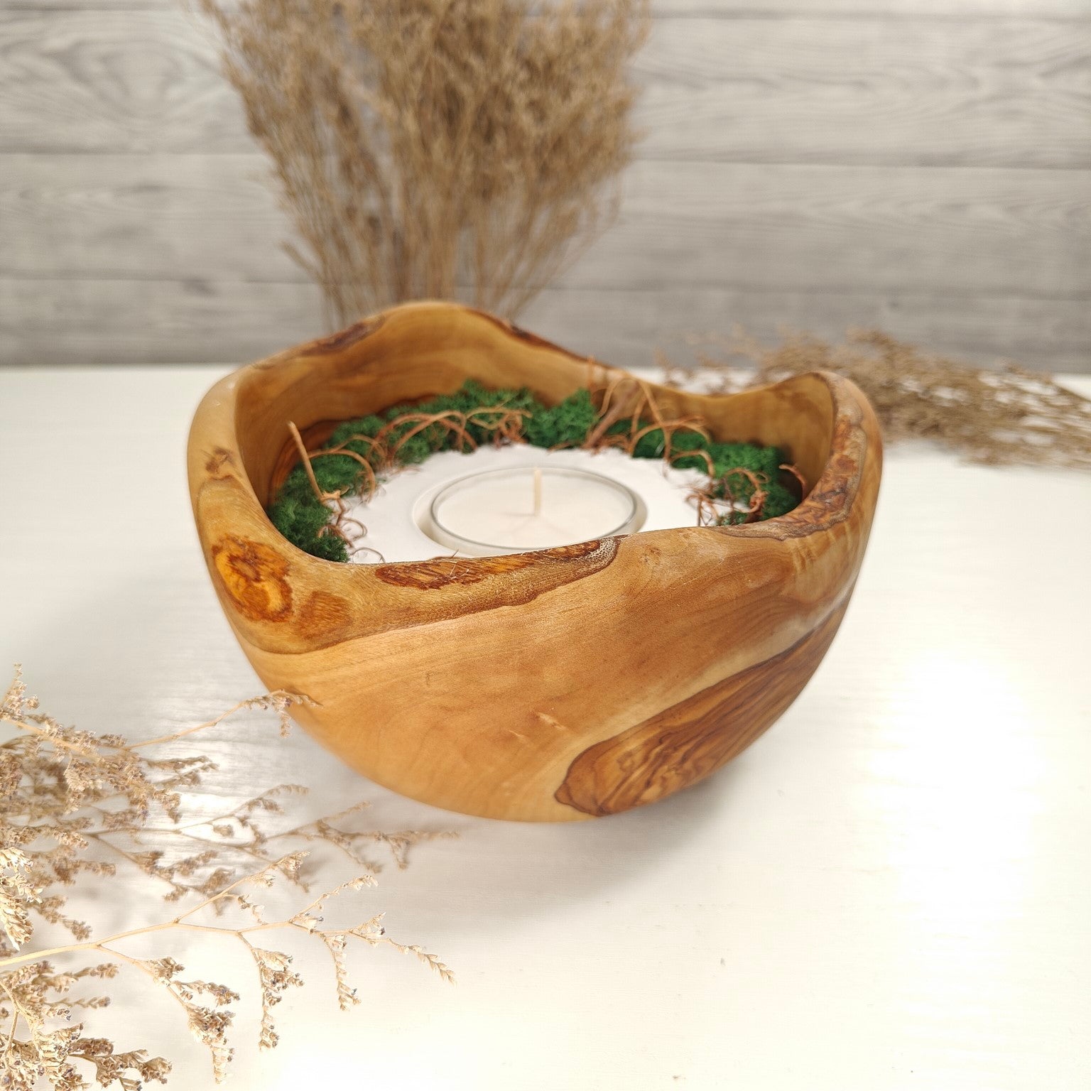 Unsere Olivenholzschalen für Teelichter sind die perfekte Geschenkidee.  Das charaktervolle Olivenholz, verbunden mit weissem Guss-Keramik ergibt einen schönen Farbkontrast und lässt die Kerze durch die weisse Fläche noch heller erscheinen. Jede Kerze ist ein Unikat und einzigartiges Geschenk.