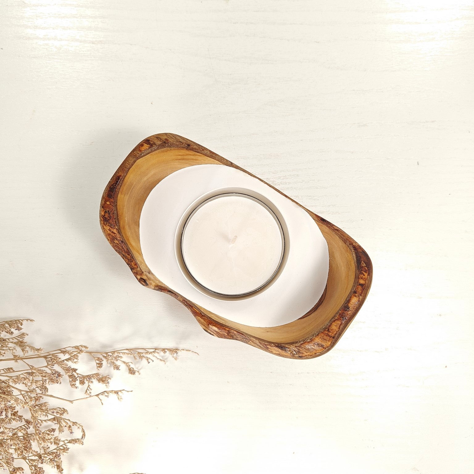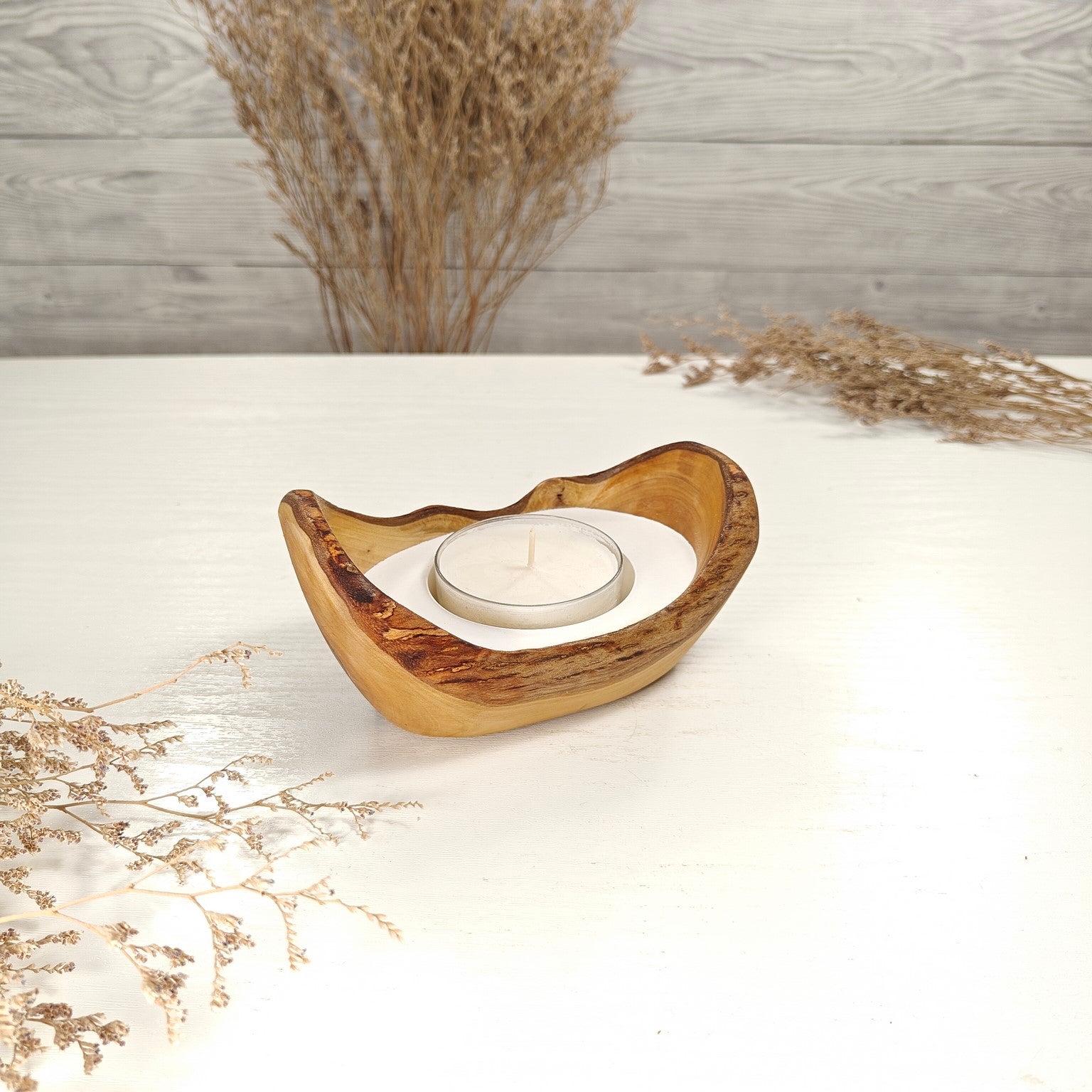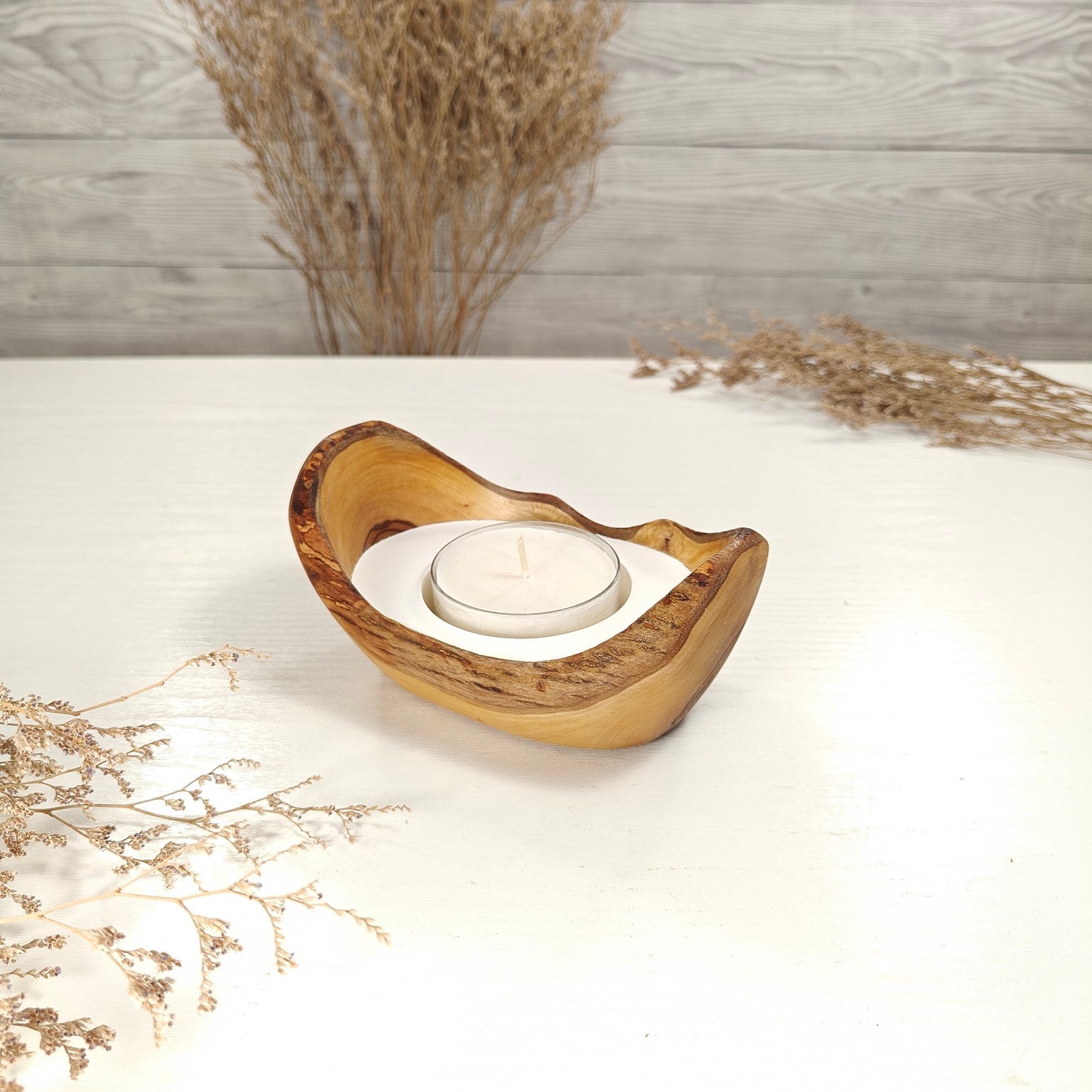 Unsere Teelichter in Olivenholzschalen sind die perfekte Geschenkidee.  Das charaktervolle Olivenholz, verbunden mit weissem Guss-Keramik ergibt einen schönen Farbkontrast und lässt die Kerze durch die weisse Fläche noch heller erscheinen. Jede Kerze ist ein Unikat und einzigartiges Geschenk.