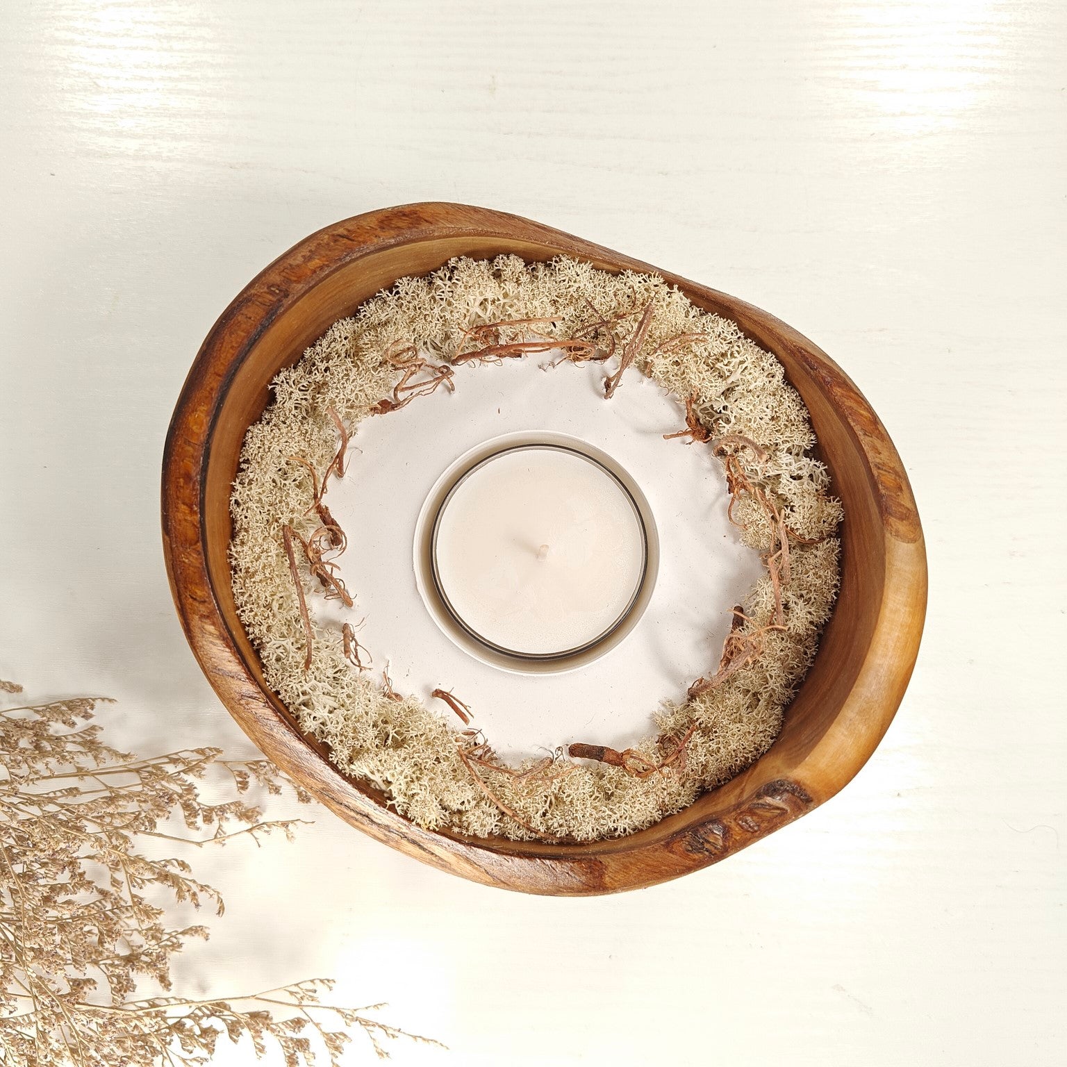 Teelicht-Kerze in Olivenholzschale, TRC-XL-00063, D 17cm, 60mm Teelicht
